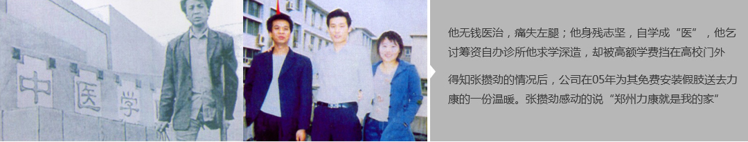 鄭州市力康假肢矯形器有限公司(簡(jiǎn)稱力康),是一家專業(yè)從事假肢矯形器的設(shè)計(jì)、研發(fā)、制作及裝 配的專業(yè)機(jī)構(gòu)。成立于1992年是河南省唯一一家福利企業(yè)。力康下設(shè)業(yè)務(wù)部、技術(shù)部、住院部、康復(fù) 部、售后服務(wù)部,并配有現(xiàn)代化的裝配車間和功能齊全的訓(xùn)練大廳,為殘疾朋友康復(fù)訓(xùn)練提供了可靠 保障。總經(jīng)理穿戴假肢多年,有著豐富的臨床經(jīng)驗(yàn)和親身體會(huì);多年來,力康已為全國幾十萬名殘疾 朋友安裝上舒適、美觀、耐用的假肢和矯形器具,使他們更大限度地恢復(fù)了正常的工作和生活。“產(chǎn) 品即人品”的質(zhì)量理念、先進(jìn)的技術(shù)、實(shí)惠的價(jià)格、完善的售后服務(wù)是力康取勝的法寶……